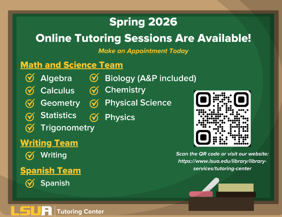 - The Tutoring Center. To learn more visit LSUA Tutoring Center - In Person & Virtual Options AvailableÂ